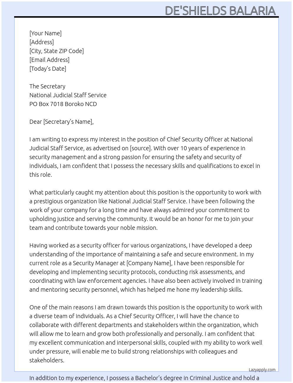 Chief security Officer Cover Letter At National Judicial Staff Service