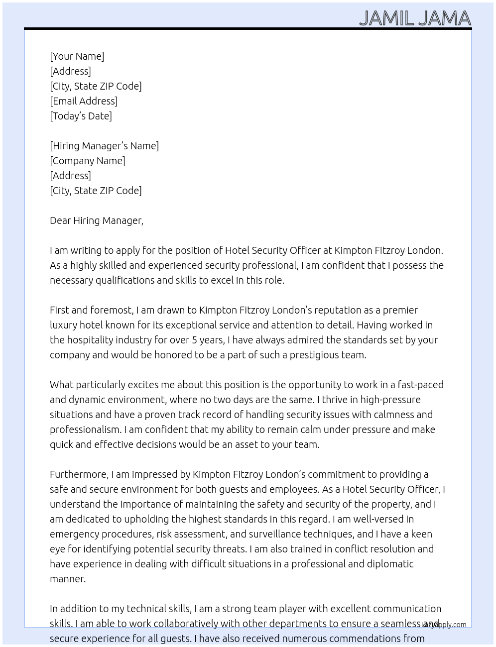 Hotel Security Officer Cover Letter Examples