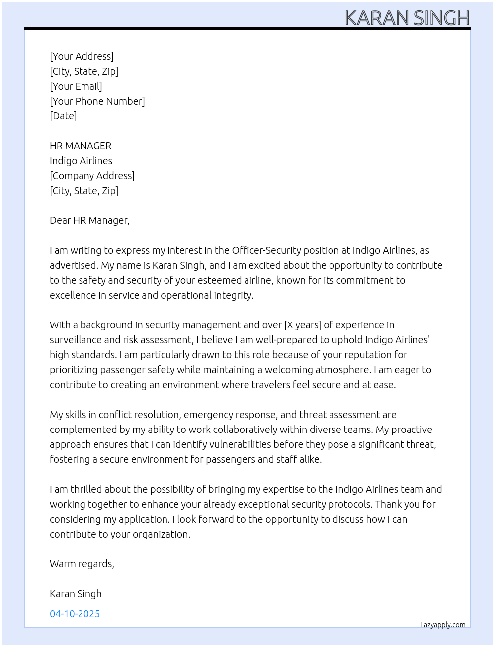 Check out these officer-security cover letter sample and examples previously used by job seekers to land on job interviews as officer-security. Use our AI cover letter generator to create a personalized cover letter as officer-security.