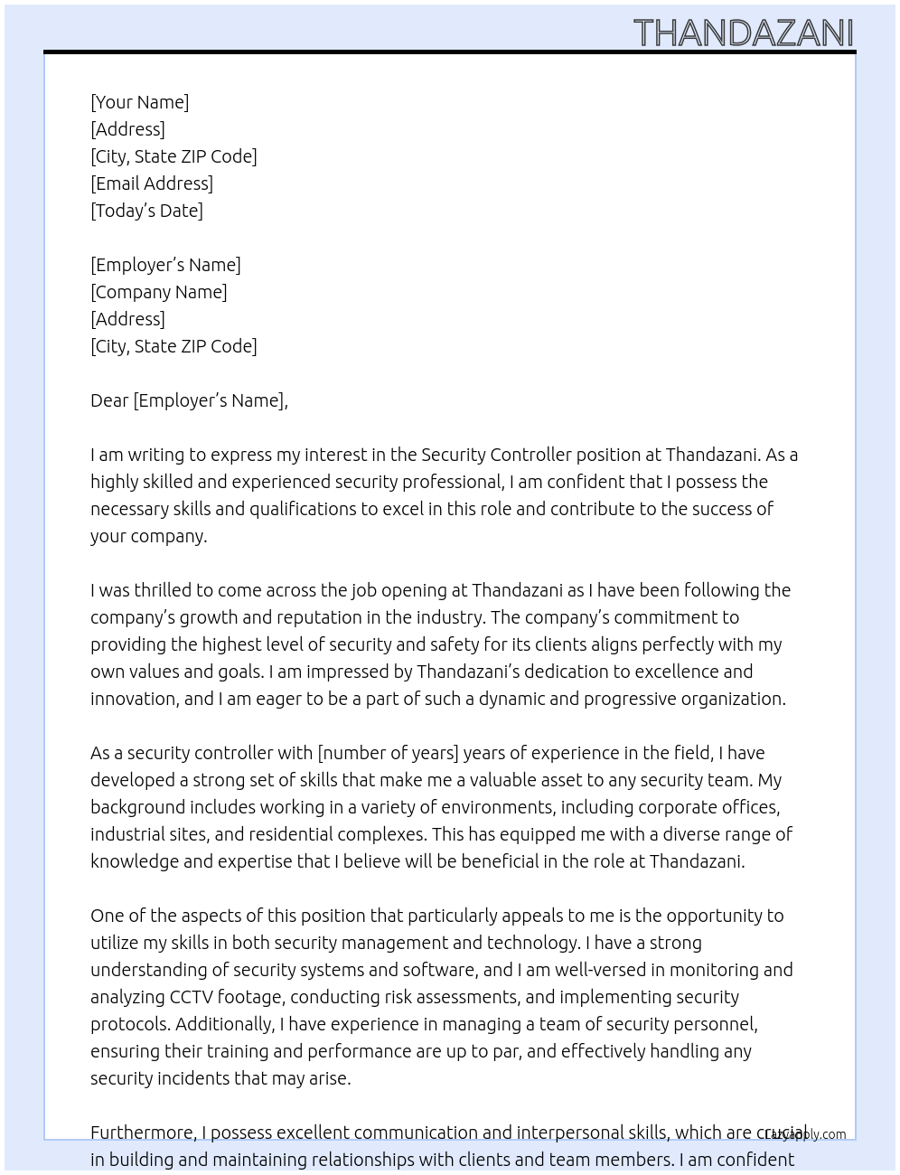Security Controller Cover Letter At Thandazani
