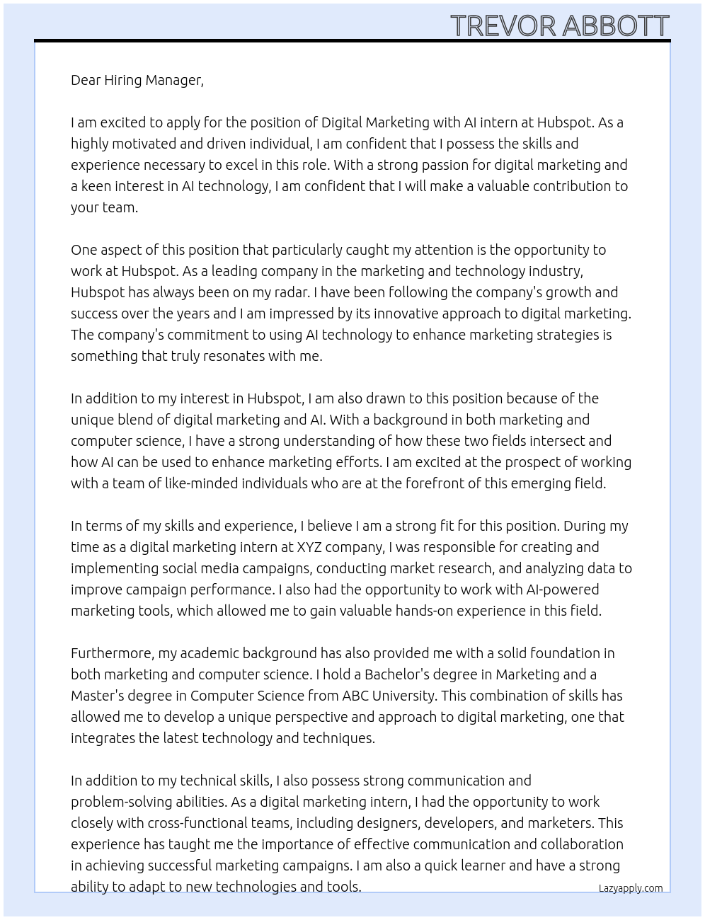 Digital Marketing with AI intern Cover Letter At Hubspot