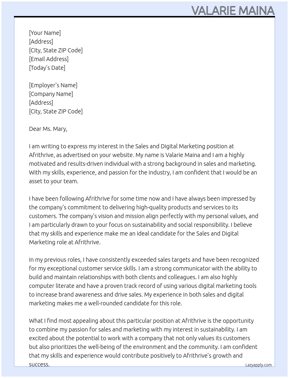 Sales and Digital marketing Cover Letter At Afrithrive