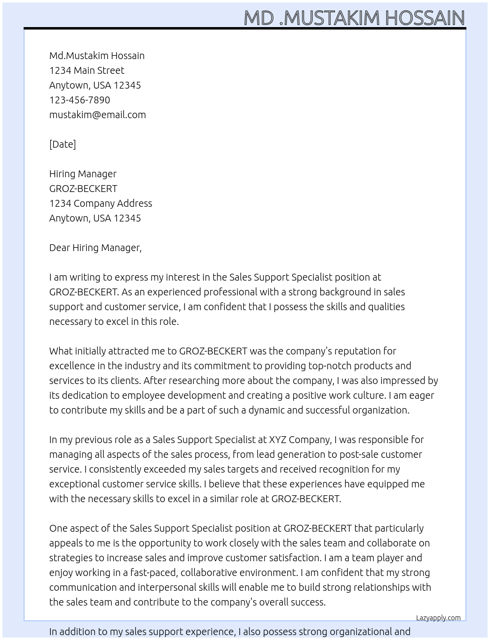 Sales Support Specialist Cover Letter At GROZ-BECKERT