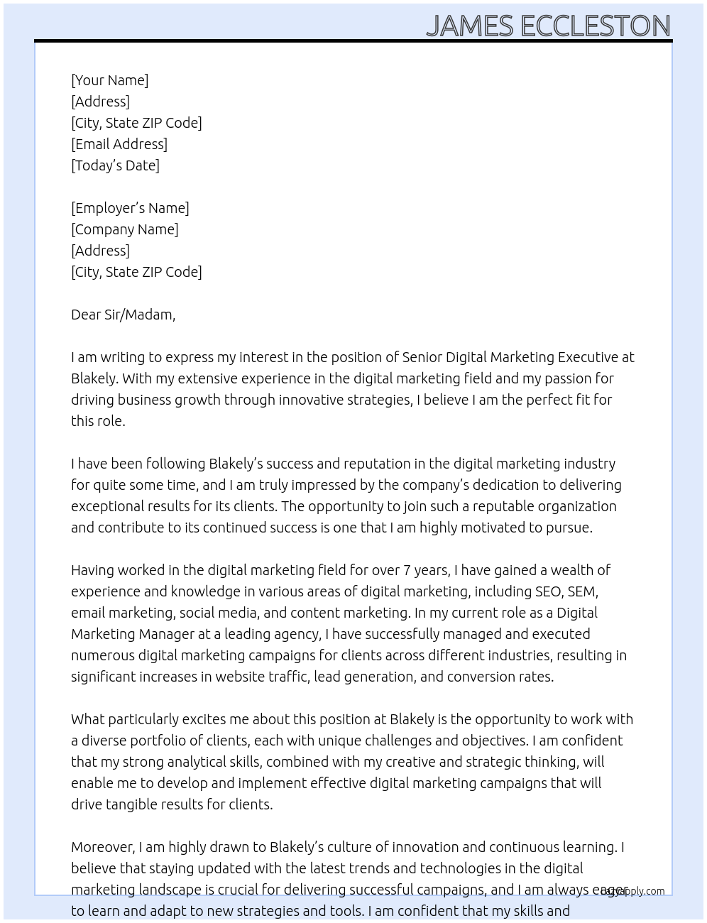 Senior Digital Marketing Executive Cover Letter At Blakely