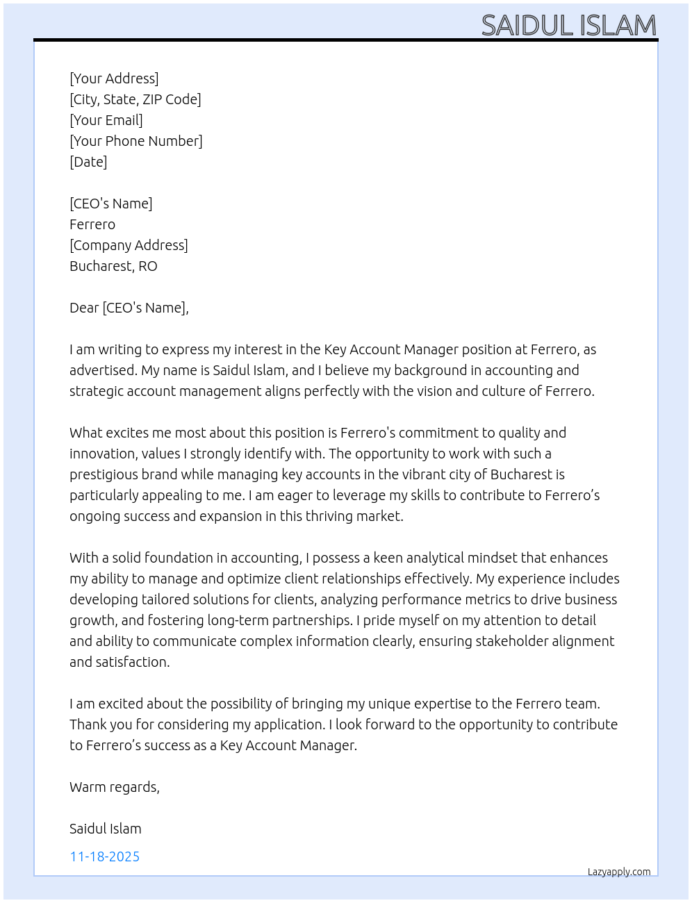 Cover letter for key account manager - LazyApply