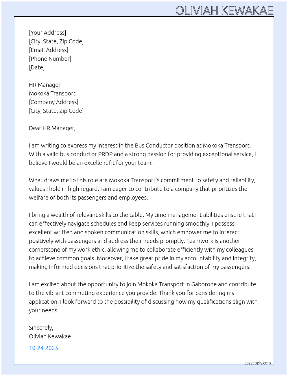 Bus Conductor Cover Letter At Mokoka Transport