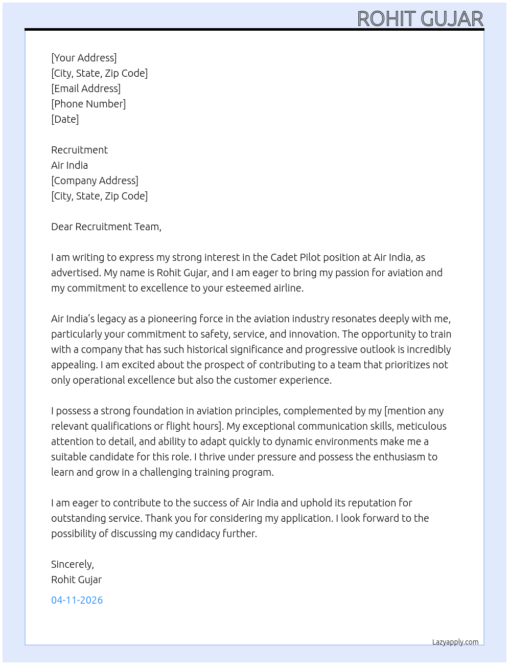 Cover letter for cadet pilot - LazyApply