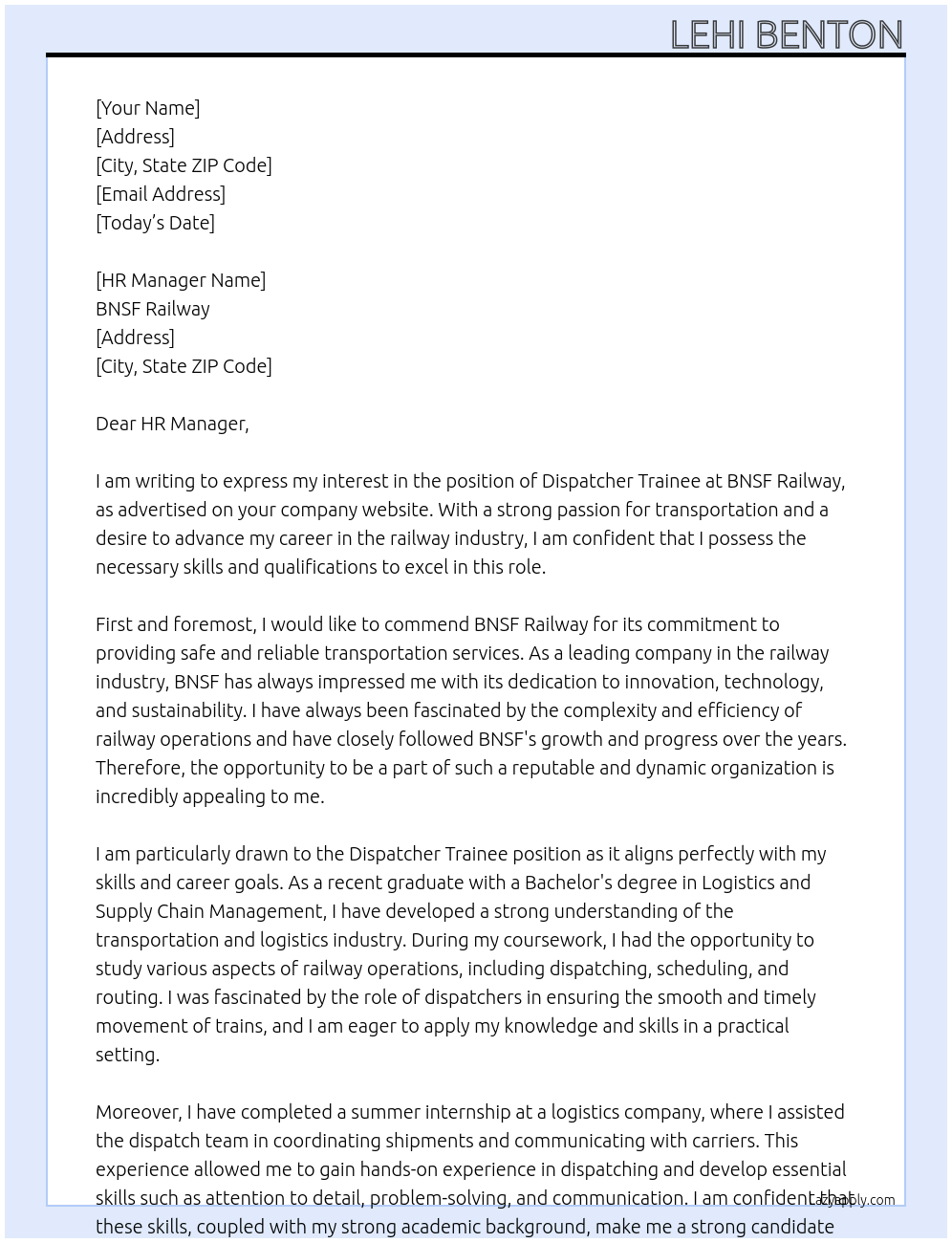 Dispatcher Trainee, Ft Worth, Tx Cover Letter Examples And Template