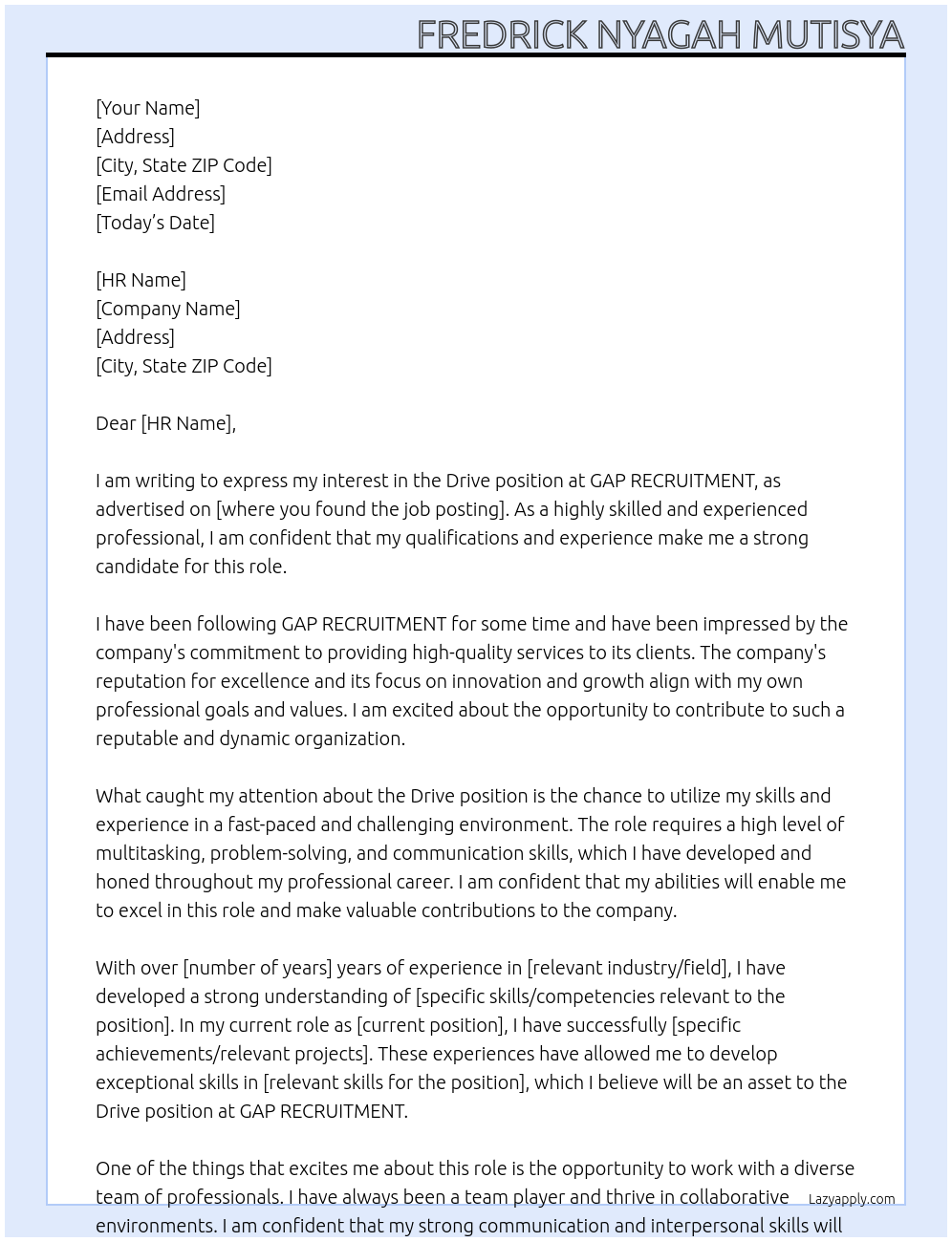 Drive Cover Letter