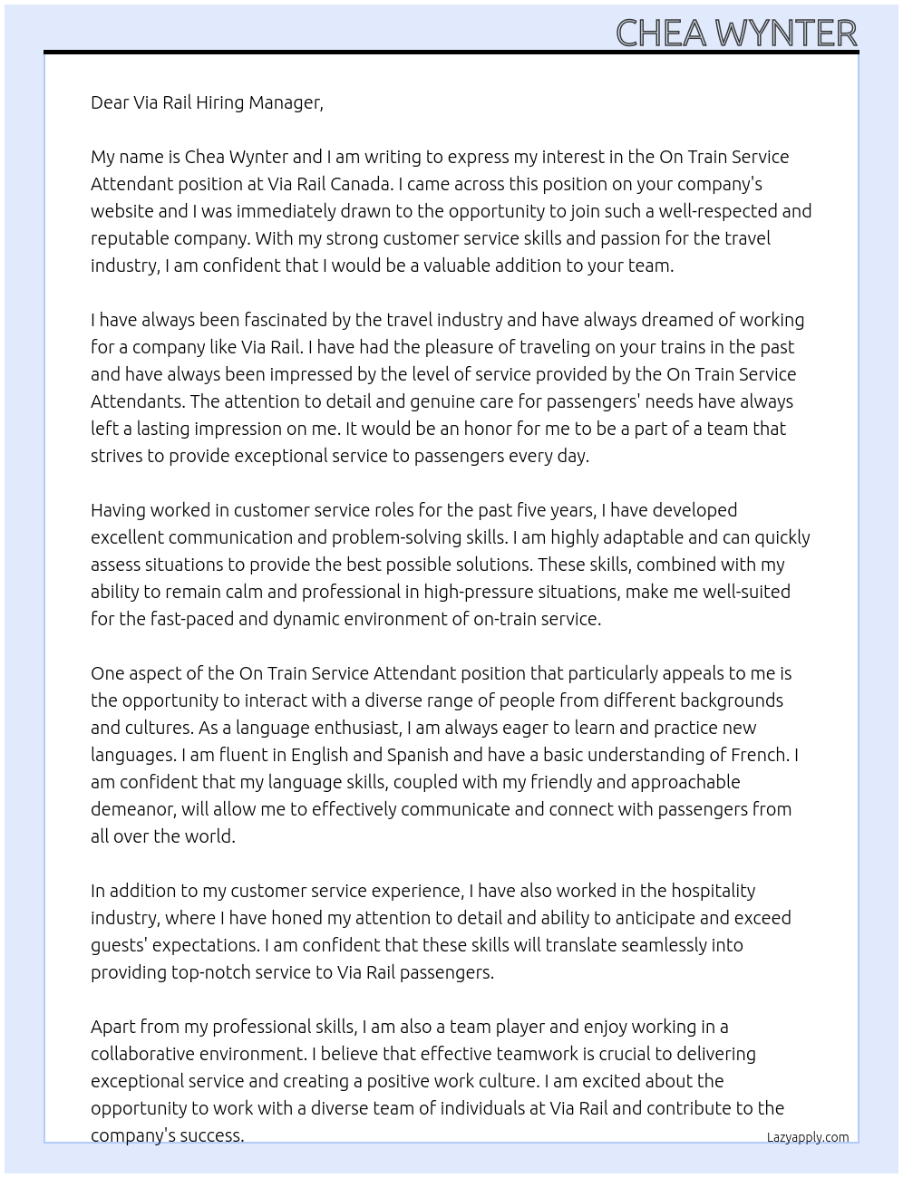 On Train Service Attendant Cover Letter At Via Rail Canada