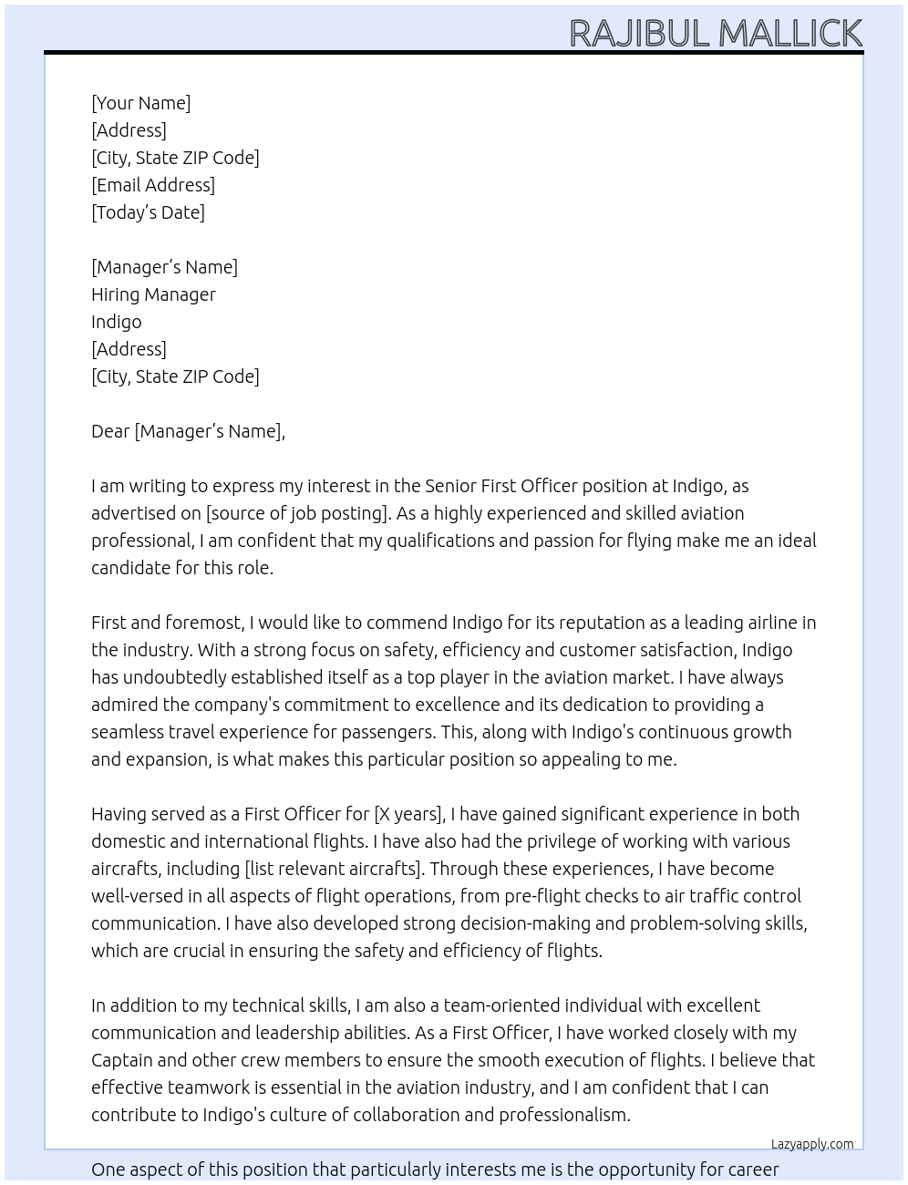 Senior First Officer Cover Letter Examples And Template