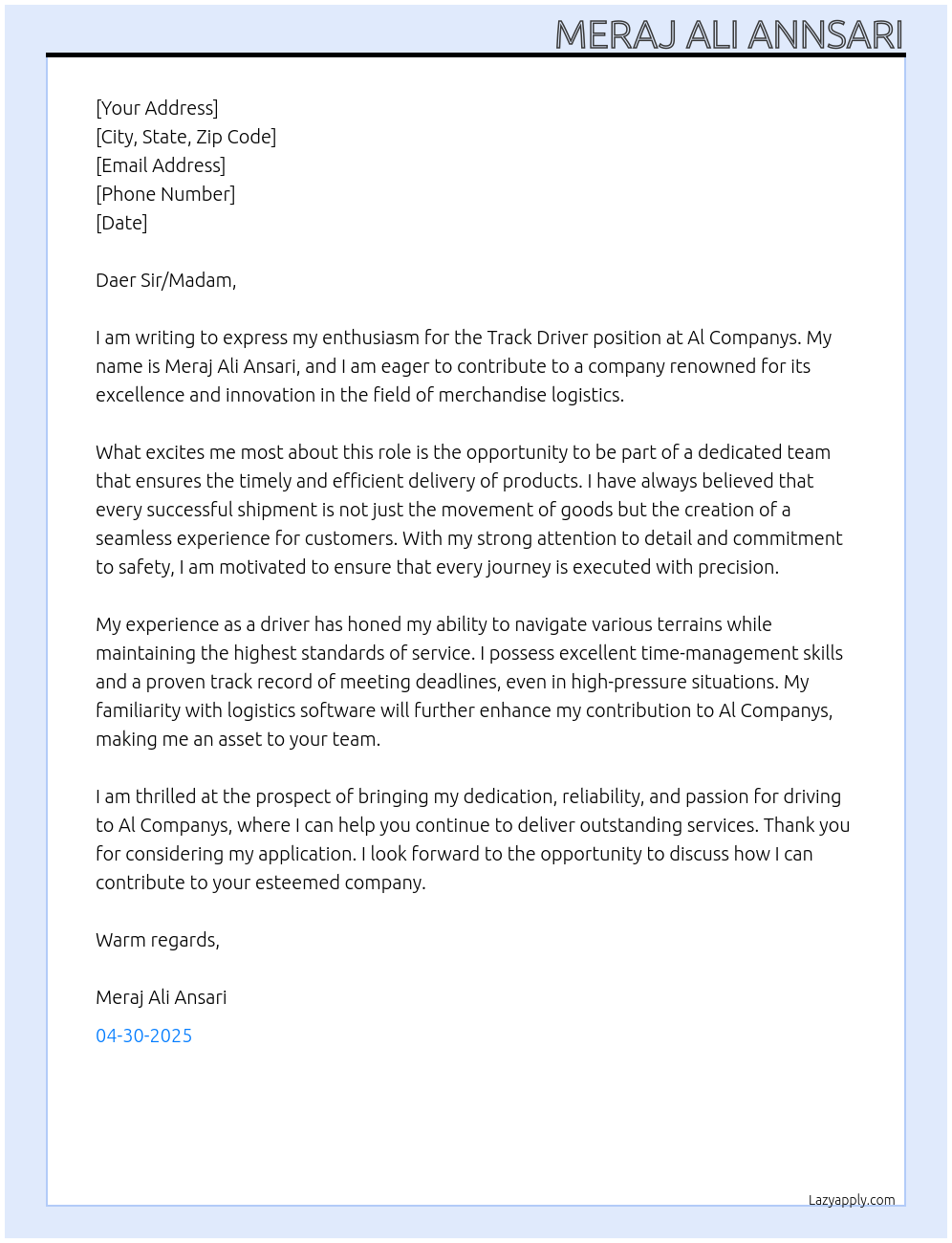 Track driver sels many marchandaijar Cover Letter At Al companys