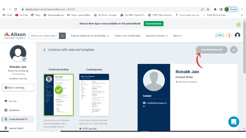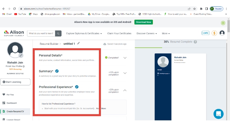 Overall, Alison is a good platform for learners but its resume builder lacks in terms of customization and automated services. Alternatives for it are Zety, EnhanCV, Kickresume, etc.
