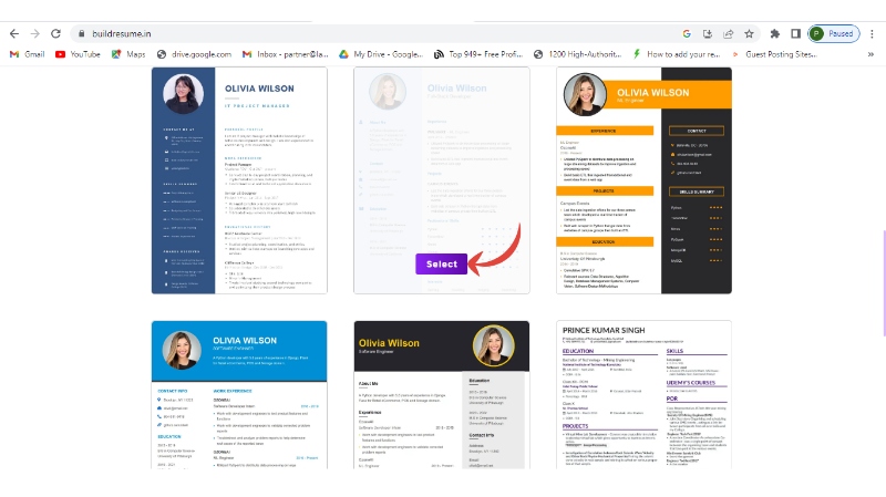Step 1: Visit their official website Click on Build My CV and select a template