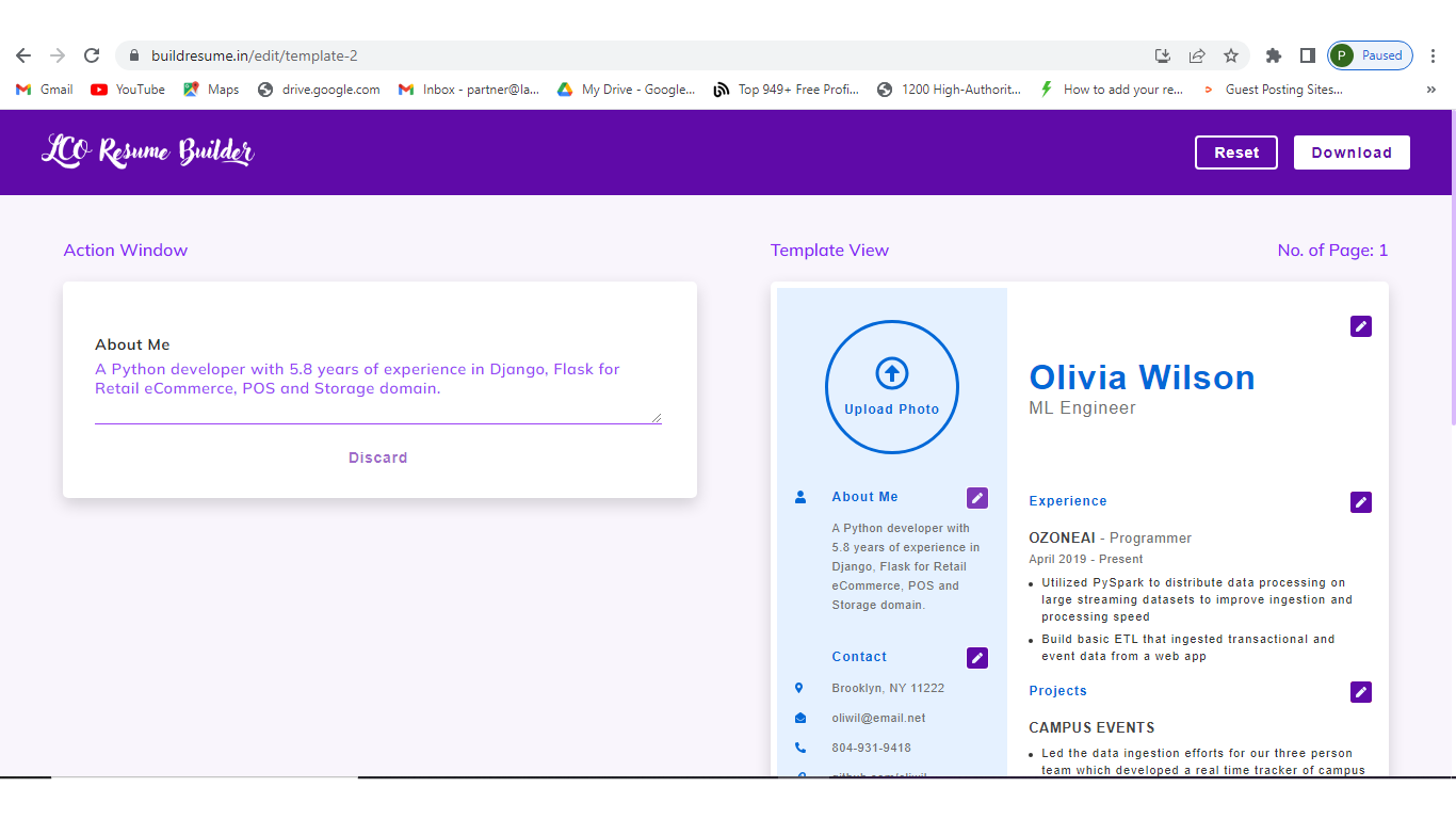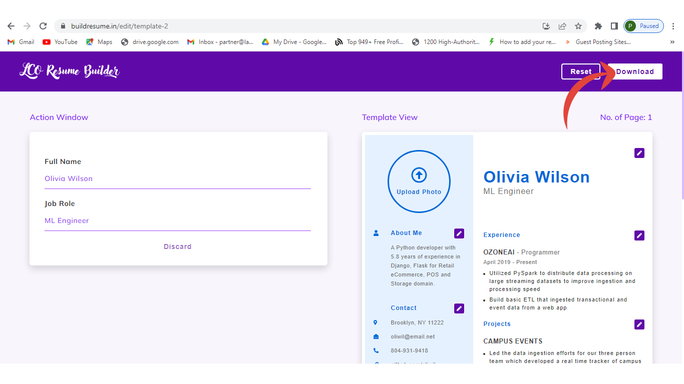 Step 2: Now just customize your resume and continue to download