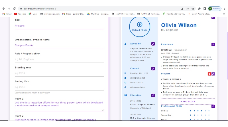 BuildResume is an online resume builder with quick working. Job seekers can create their resumes in just some minutes. You will get well-formatted templates.