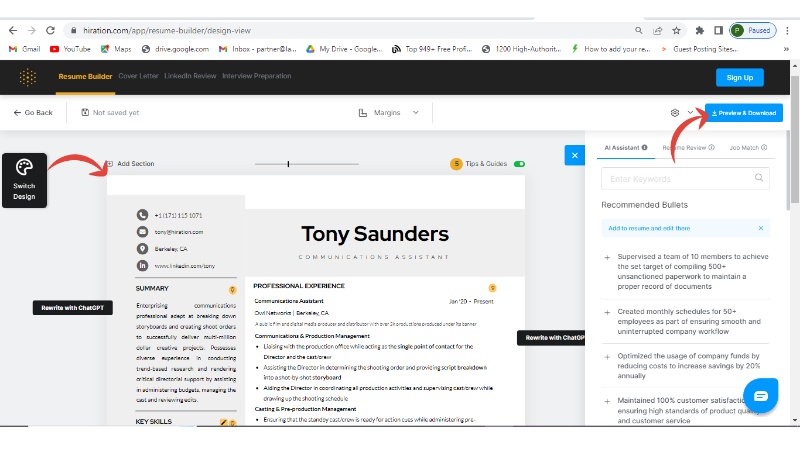 Hiration offers a great resume builder which applies AI with ATS keywords making your resume effective and selective. It is giving cut-throat competition to other resume builders like Zety, EnhanCV, etc. Considering its customer satisfaction, it is good to go with Hiration.