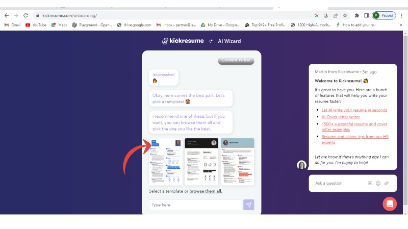 Kickresume is the best option for those who are in a hurry to create their resume as it totally automates the resume-building process with the help of its AI wizard just by entering your name and job title. It offers more than 50+ professional templates with customizable styles, designs, and fonts. But it kills your creativity by spoon-feeding you the AI content. There are many alternatives available to Kickresume on the internet likeFlowCV, Jobseeker, Wepik, etc.