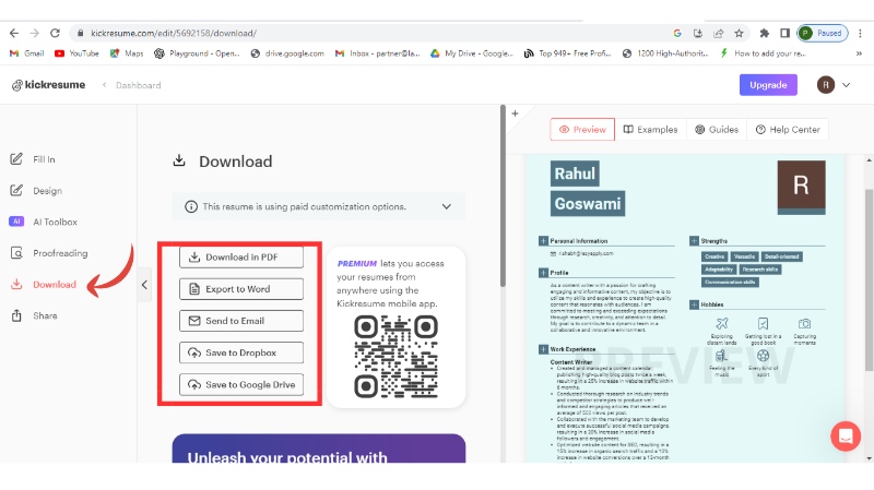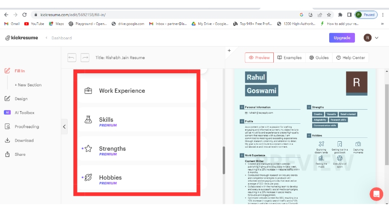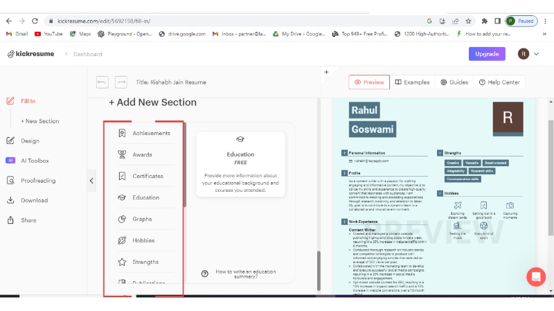Step 5: It will automatically create your resume with the help of artificial intelligence (AI) you just need to modify it or add new sections accordingly