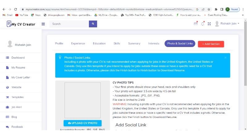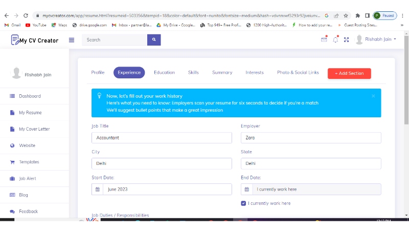 My CV Creator is an online resume builder that helps job seekers create professional-looking resumes in just 5 minutes with writing tips and suggestions. It has a very interactive interface with smooth functioning. You need to register at their site to create your resume.
