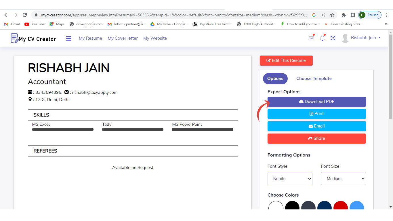 Step 12: Download your resume
