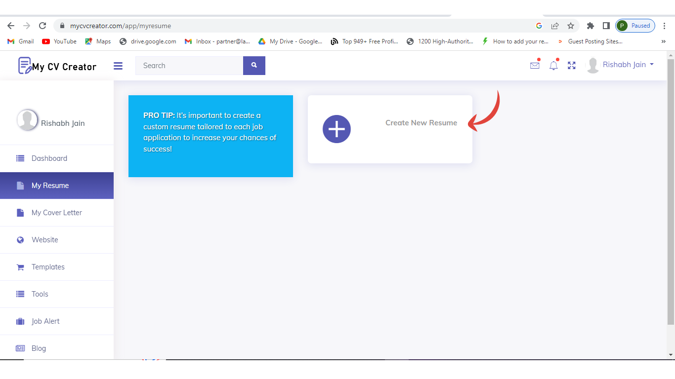 Step 3: Go to my resume and create a new resume