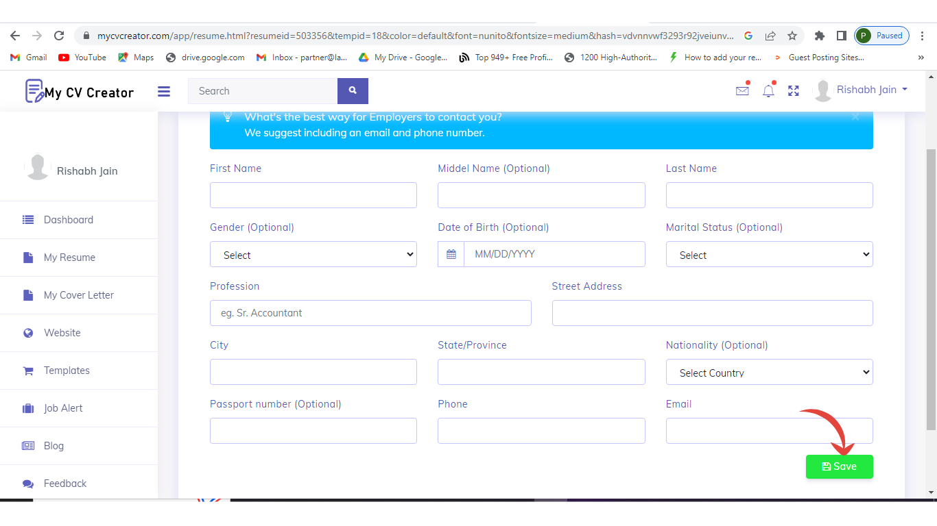 Step 5: Fill in your personal details and click on save