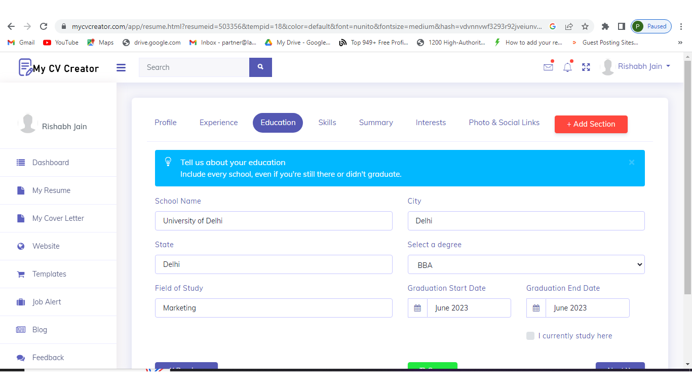 My CV Creator Resume Builder