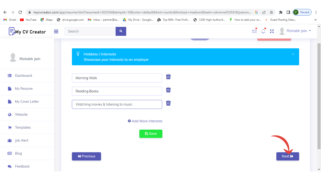 Step 10: Add your hobbies and interests and continue to next