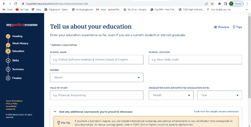 Step 10: Now fill in your education