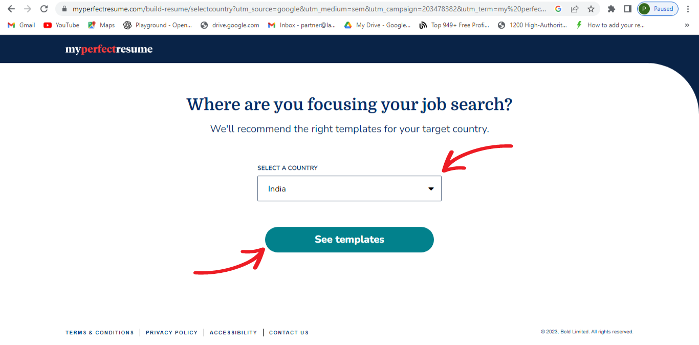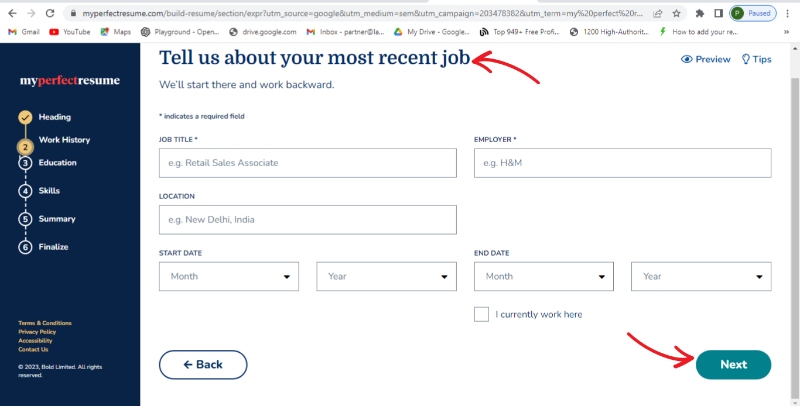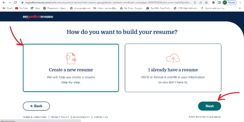 Step 1: Open their official site, scroll down, and select "BUILD MY RESUME"