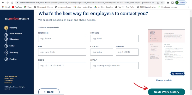 Step 9: Now "WORK HISTORY" pop-up window will appear, click next and fill in your work history