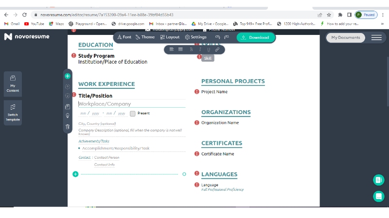 Novoresume Resume Builder