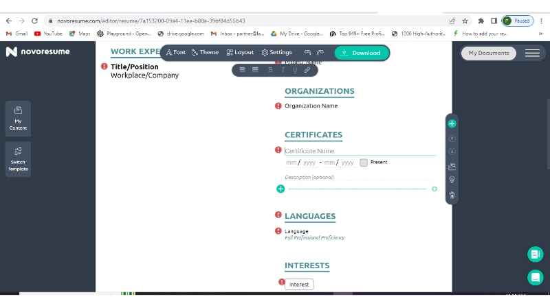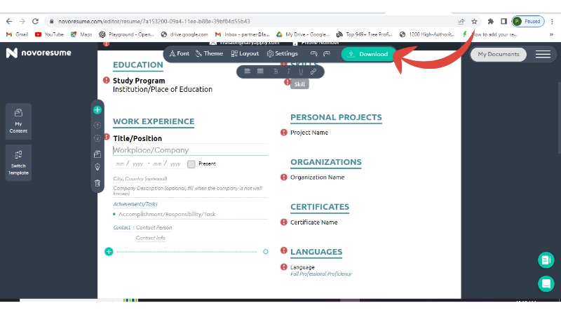 Step 5: Once all the sections have been added, download your resume.