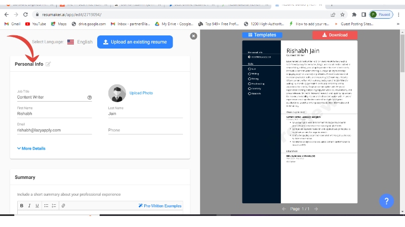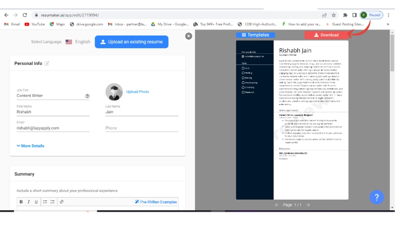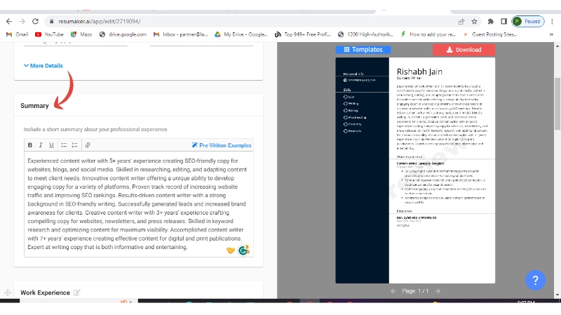Resumaker.ai is an online resume builder that enables users to create their resumes with readymade templates and pre-written content, and AI-optimized suggestions for each and every section. It is very easy to use and create fantabulous resumes in just minutes, no need to follow conventional methods and spend hours creating resumes.