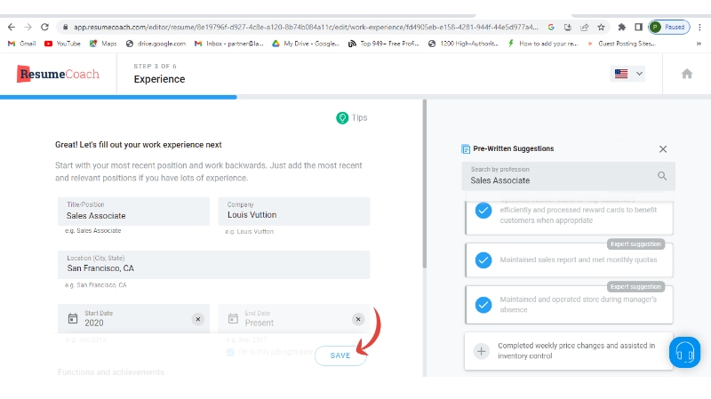 Step 5: Add your experience and save