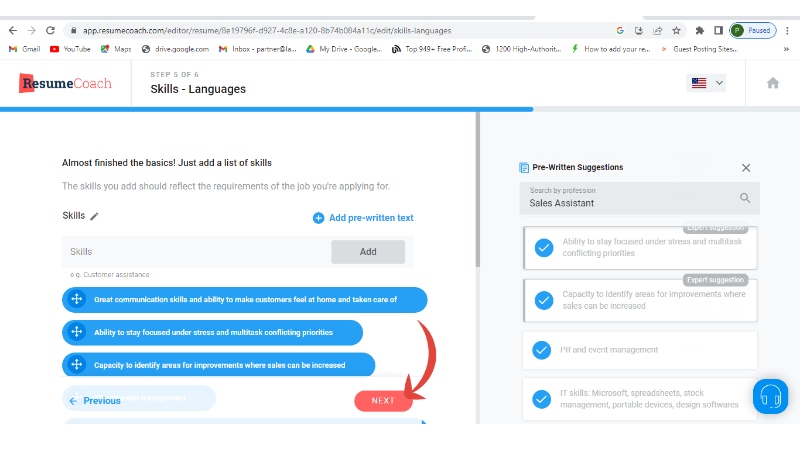 Step 6: Add your skills and continue to next