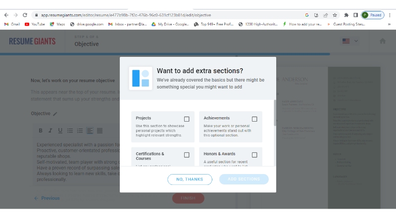 Overall, Resume Giants is an outstanding resume builder with all the features that may be required by a job seeker to craft his/her resume. It is good to go with Resume Giants. Alternatives to Resume Giants are Kickresume, ResumeNerd, ResumeLab, etc.
