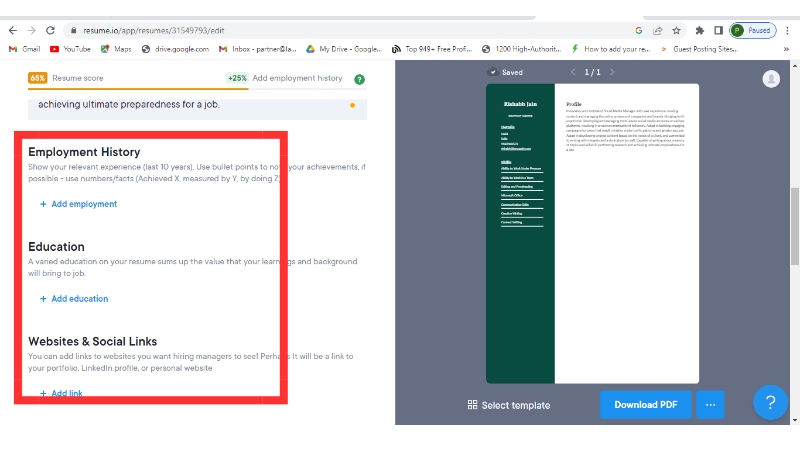 Resume.io is a great resume builder available online on the internet with its multi-feature tools like customizable templates and skill sections, pre-written content, expert advice, etc. It not only saves job seekers time but also increases the chances of selection of your resume.