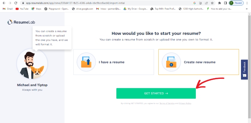 Step 1: Open ResumeLab's official website, scroll down, and click on "BUILD YOUR RESUME"
