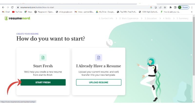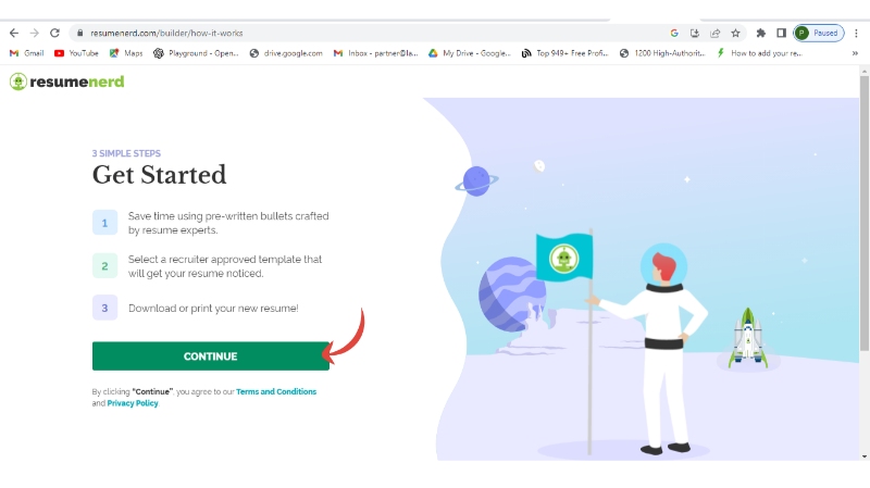 Step 1: Visit their official website and click on "BUILD MY RESUME"