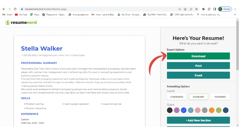 Step 12: Finalize and download your resume