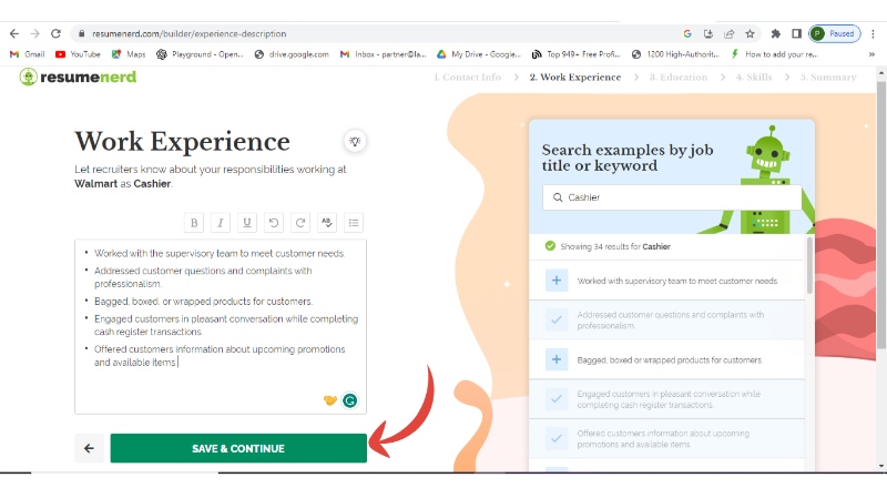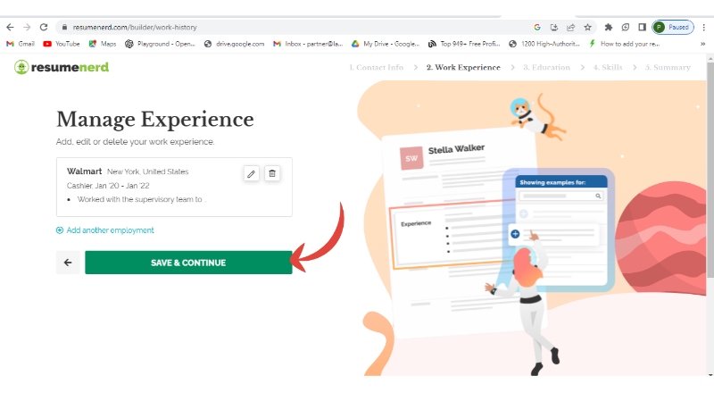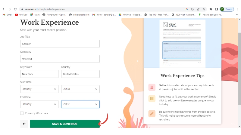 Step 6: Now add your work experience and continue