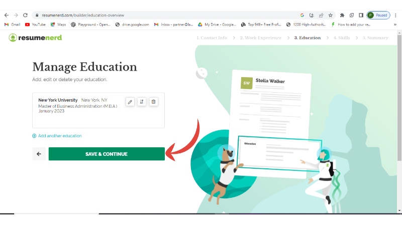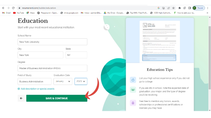 Step 7: Enter your education and continue