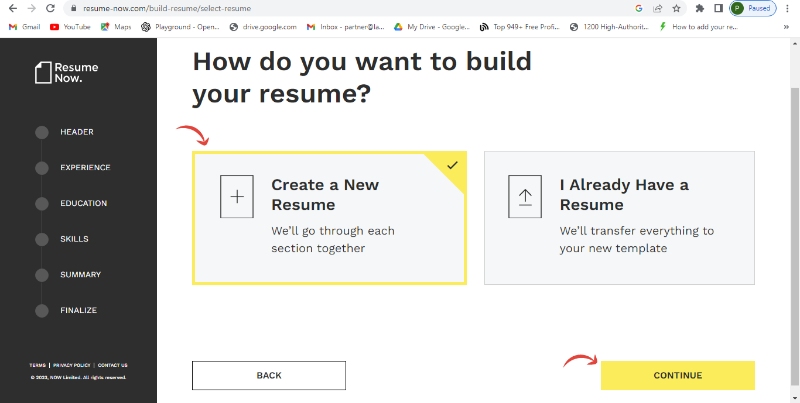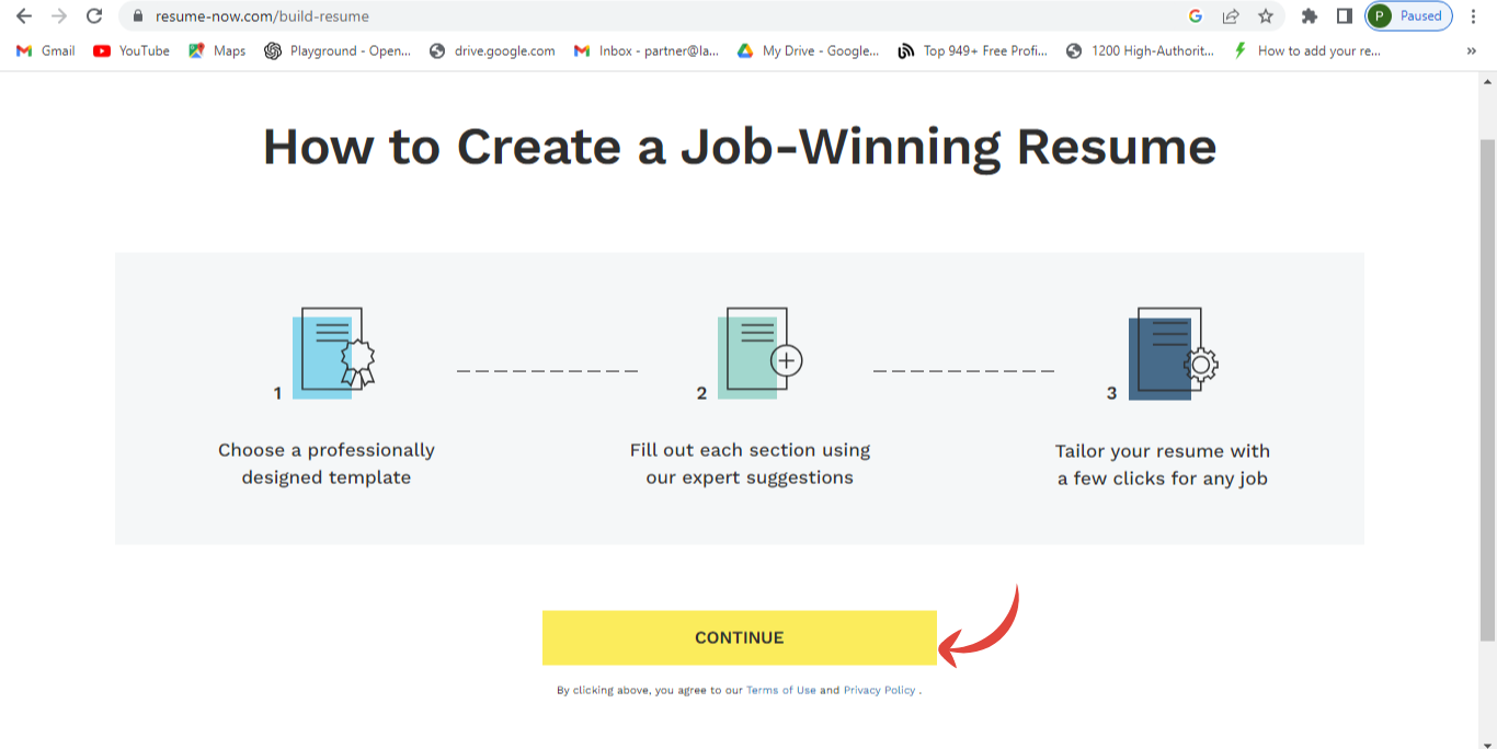 Step 1: Open their official website and click on "CREATE YOUR RESUME"
