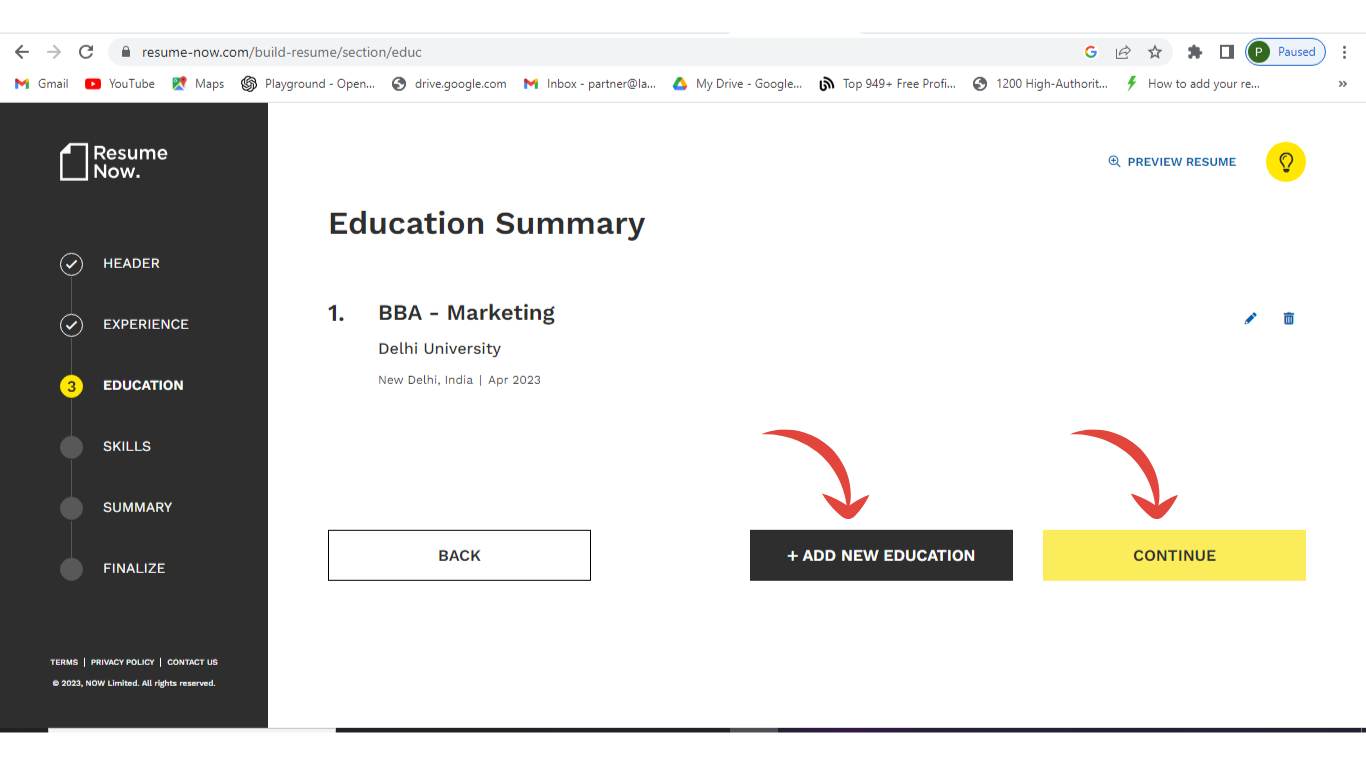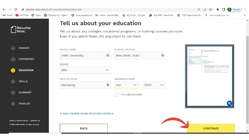 Step 10: Add about your education and if you want to add more then click Add New Education otherwise continue