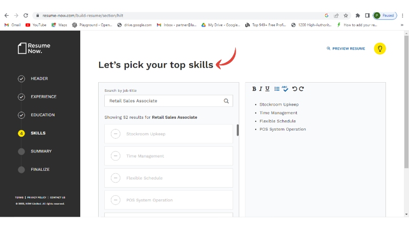 Step 11: Now pick up your skill set or you can add on your own and continue