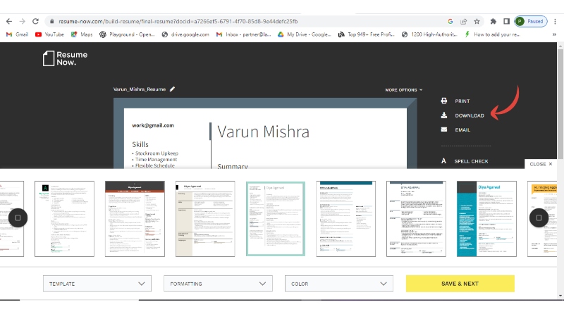 - You can download your resume in multiple formats