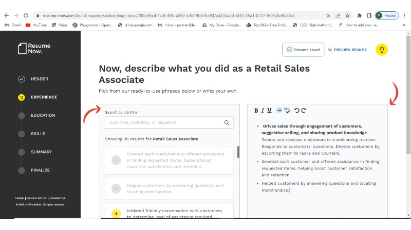 Step 8: Add your experience, describe your experience as [Whatever position you typed], and continue (Its AI will help you with the suggestions)