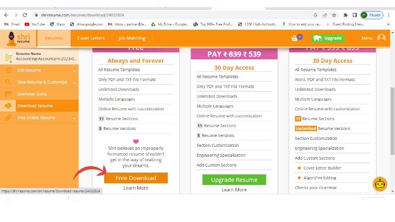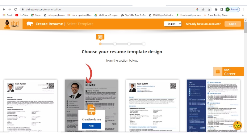 Shri Resume offers an easy-to-use online resume builder with a simplified interface with a wide variety of templates. It is made for freshers as well as working professionals.